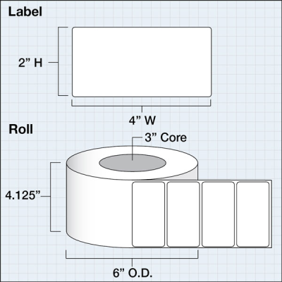 Genuine Premium Gloss Paper Plus Labels (4" X 2") (3" Core) Standard Yield, 1,300 labels/Roll